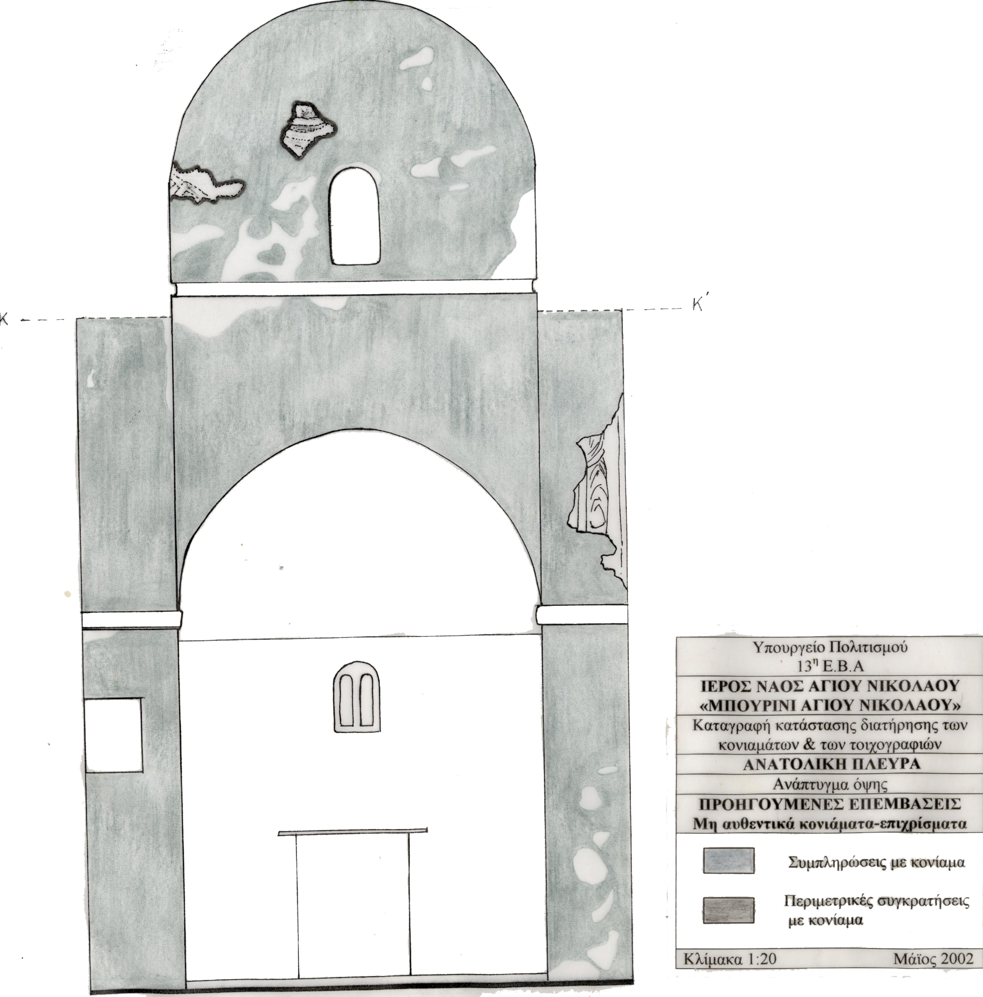 Γραφική Απεικόνιση παθολογίας - Ανατολική Πλευρά - Ανάπτυγμα όψης - Μη Αυθεντικά κονιάματα -Επιρχρίσματα