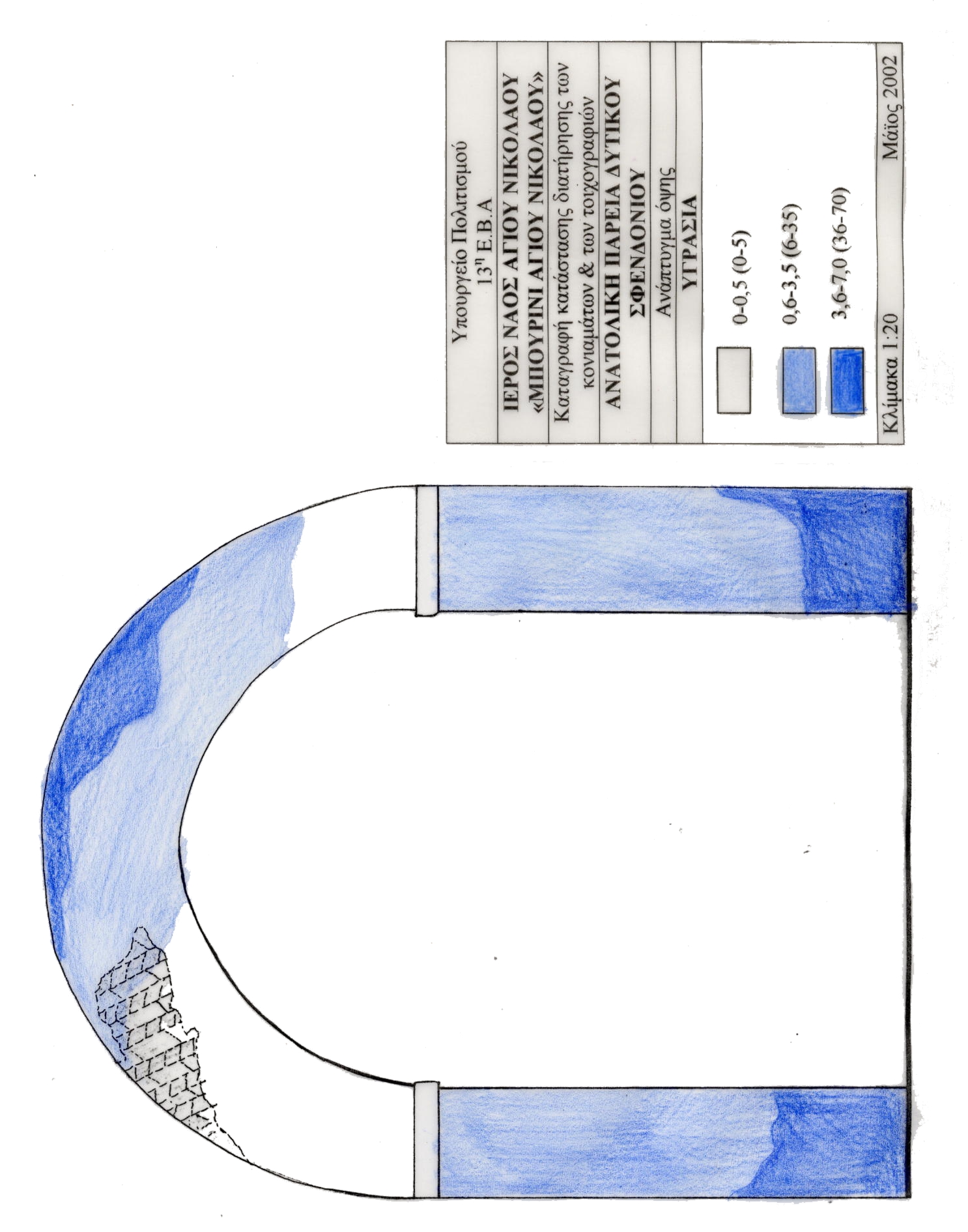 Γραφική Απεικόνιση παθολογίας - Οψη Ανατολικής παρειάς Δυτικού Σφενδονίου - Προηγμένες Επεμβάσεις, Μη αυθυντικά κονίαματα - επιχρίσματα