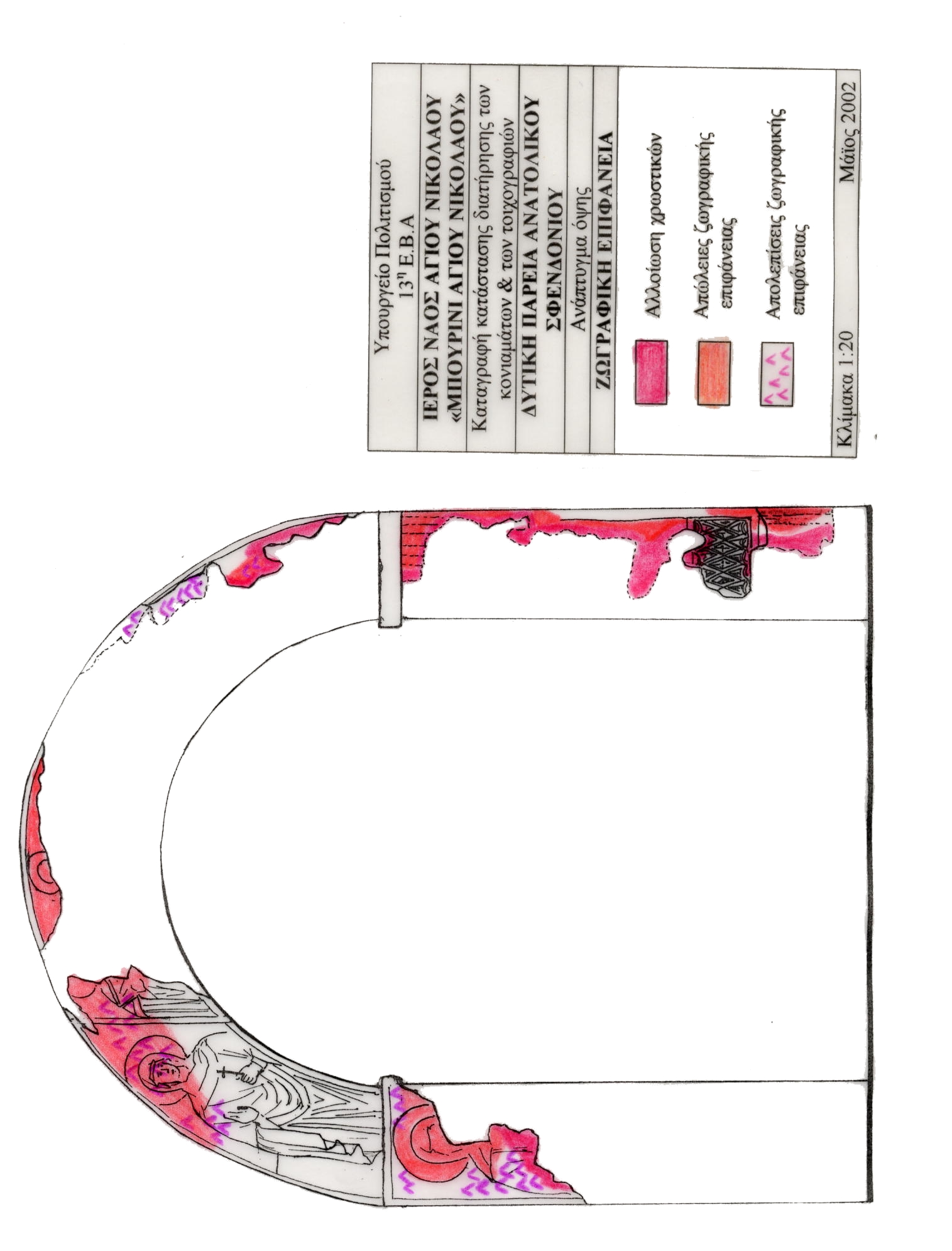 Γραφική Απεικόνιση παθολογίας - Δυτική Παρειά Ανατολικού Σφενδονίου - Ανάπτυγμα Όψης -Ζωγραφική επιφάνεια